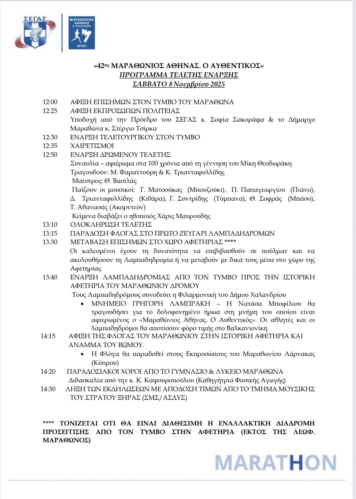 Δείτε εδώ το πρόγραμμα της τελετής αφής της Μαραθώνιας Φλόγας