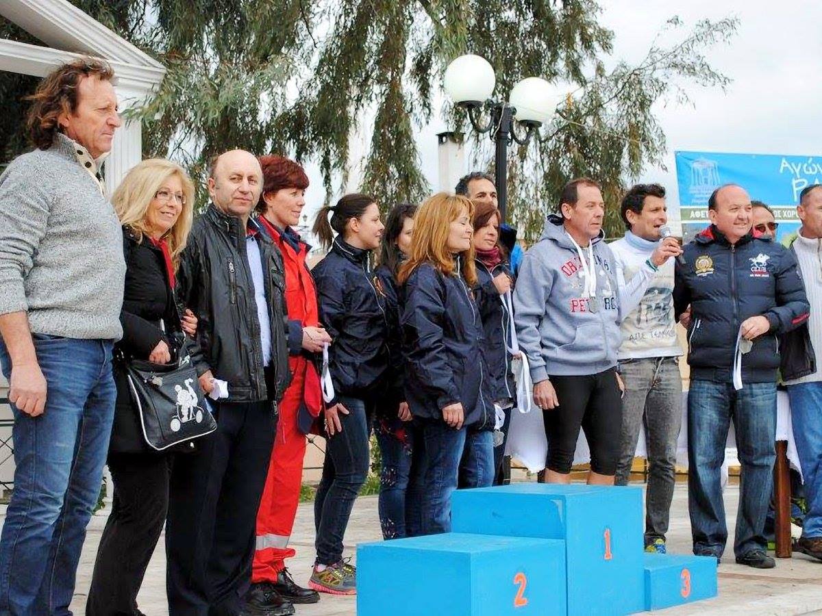 σε όλους τους τερματίσαντες αθλητές.Ιδιαίτερα στις απονομές των τριών πρώτων Νικητών / Νικητριών, δόθηκαν για έπαθλα αγαλματίδια με το σύμβολο του Ραμνούς την θεά Νέμεσις, αλλά και αγαλματίδια φτιαγμένα από τον σύλλογο γυναικών, την θεά Νέμεσις, και τα παραδοσιακά κεντητά ψωμιά (κουλούρες του γάμου η της βάπτισης) που δίνονται στην περιοχή του Γραμματικού. Οι κουλουρες ήταν φτιαγμένες από μια κυρία από το Γραμματικό.Είναι πολύ σημαντικό και σπουδαίο σε αγώνες τέτοιους που έχουν να κάνουν με την Ιστορία αλλά και την τοπική παράδοση, να προβάλλονται παράλληλα ήθη και έθιμα της περιοχής μας. Τέλος εμείς θα θέλαμε να σας ευχαριστήσουμε όλους που μας τιμήσατε με την παρουσία και την συμμετοχή σας στον 1ο Αγώνα Δρόμου Ραμνούς, και θα χαρούμε πολύ να μας τιμήσατε ξανά με την παρουσία σας και στον 2ο Αγώνα Δρόμου Ραμνούς 2016 πάντα την τελευταία Κυριακή των αποκριών!!!