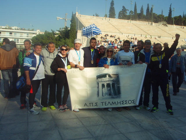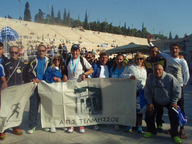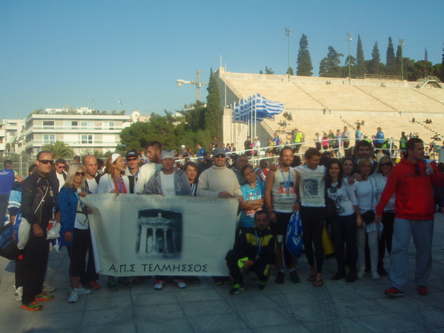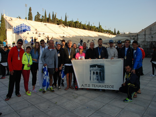 Τι πιο όμορφο και σπουδαίο να τερματίζεις σε αυτό το παγκόσμιο έργο τέχνης!Τι πιο σπουδαίο να τερματίζεις βάζοντας σαν στόχο για πρώτη φορά να τερματίσεις την αυθεντική κλασική διαδρομή, αυτή που έχει γράψει η παγκόσμια ιστορία! Τι ποιο ωραίο να σε περιμένουν οι συγγενείς σου, οι φίλοι σου, οι συναθλητές σου να τερματίζεις στο Καλλιμάρμαρο! Τι πιο ωραίο να βαπτιστείς ΜΑΡΑΘΩΝΟΔΡΟΜΟΣ! Να μας κάνεις όλους υπερήφανους και βέβαια τον σύλλογο μας, ποιον άλλο τον ΤΕΛΜΗΣΣΟ μας! Η κορωνίδα του αθλητισμού ο Μαραθώνιος, που για να τρέξεις και να τερματίσεις θέλει υπομονή, εργασία, πίστη, θέληση, τόλμη, θάρρος, αγάπη, πάθος, και προπάντων υγεία! Αυτά όλα είμαι σίγουρος ότι όλοι όσοι τρέχουν Μαραθώνιο πρέπει να τα έχουν, και τα έχουν σαν όπλα τους. Τα συναισθήματα απερίγραπτα, σε όλη την διαδρομή, από την αρχή έως το τέλος. Το στοίχημα το κερδίσατε βέβαια με κανέναν άλλο παρα μόνο από τον εαυτό σας! Άξιοι λοιπόν, όλοι οι συναθλητές μας και φίλοι που έτρεξαν και στα 5χλμ και στα 10χλμ και στον Μαραθώνιο, ο κάθε ένας με τον ξεχωριστό του τρόπο. Άξιοι ο Νικόλας, ο Άλκης, ο Οσκαν, οι Γιαννηδες, ο Μανωλης, ο Χρήστος, ο Βαγγέλης, ο Αποστόλης, ο Αλέξανδρος, ο Θανάσης, ο Χρήστος, οι Γιωργιδες, ο Στέλιος, ο Θέμης, ο Βαγγέλης, ο Ανθιμος, ο Δημήτρης, ο Σπύρος, η Καιτη, η Ιόλη, η Ρένα, ο Ντίνος, η Μαρια μας, ο Γιώργος, οι Κωνσταντινοι μας, ο Μιλτος μας η Κατερινα μας, ο Πέτρος, ο Χριστόφορος, η Γιούλα μας, η Αναστασία μας, ο Φάνης, η Φανή μας, ο Βλάσης, ο μικρός μας Στέλιος.......,ο.. η .. και όλοι οι συναθλητές του Τελμησσού μας!Ευχόμαστε μέσα από την καρδιά μας να είναι όλοι τους καλά, να έχουν πάντα υγεία και δύναμη όχι μόνο στον Μαραθώνιο δρόμο, αλλά και στον καθημερινό Μαραθώνιο της Ζωής τους.