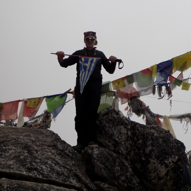 Ο Φάνης Βορεινάκης (μέλος Τελμησσού), από την αποστολή του ΕΟΣ Αθηνών στα Ιμαλάια. Στην πρώτη φωτογραφία στο μνημείο του αγίου των βουνών Sherpa Tenzing, πρώτου κατακτητή του Everest, που διακρίνεται στο βάθος αριστερά. Στη δεύτερη φωτό, στην κορυφή του όρους Nangkartshang 5080 μ. Συγχαρητήρια και εις ανώτερα αγαπητέ Φάνη.