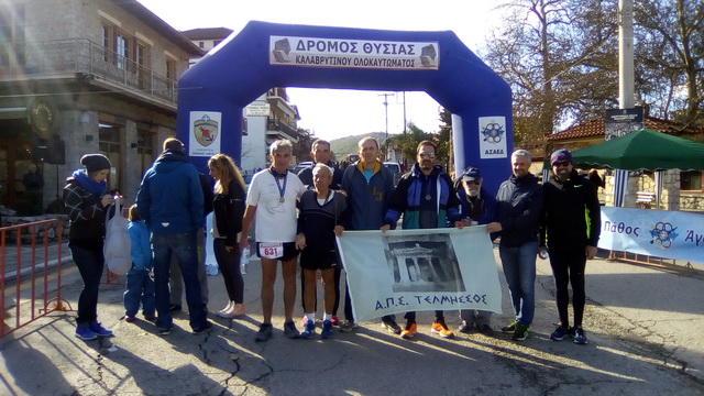βάλλεται από παντού και από τους πάντες. Είναι ο μόνος λαός που τον διακατέχει η Ανδρεία και ο ηρωισμός. Οι άνανδροι κατακτητές και παλαιότερα αλλά ακόμη και σήμερα με τον τρόπο τους προσπαθούν να καταποντίσουν το Ελληνικό γένος. Δεν θα τα καταφέρουν όμως γιατί δεν παύει να είναι άνανδροι! βάρβαροι και σκληροί! Ο Έλληνας στα δύσκολα γίνεται μια γροθιά μια οικογένεια και πάντα με το θάρρος την τόλμη και το ήθος που τον διακρίνει μάχεται έως το τέλος. Είναι πολύ σπουδαίο να κρατάς τον Ελληνισμό σου αλώβητο. Είμαστε ήμασταν και θα είμαστε αιωνία και για πάντα Ήρωες εάν κρατηθούμε ενωμένοι και μονοιασμένοι για αυτόν το Ιερό τόπο μας! Ο Δρόμος θυσίας του ολοκαυτώματος των Καλαβρύτων είναι και θα είναι για πάντα για όλες τις επόμενες γενεές που ακολουθούν, το Λίκνο της Θυσίας για το μοναδικό πολύτιμο αγαθό την ΕΛΕΥΘΕΡΙΑ. Ο Δήμος Καλαβρύτων σε συνεργασία με το ΑΣΑΕΔ θα μας θυμίζει κάθε χρόνο με τις εκδηλώσεις του και με τον συγκεκριμένο αγώνα δρόμου, ότι η παρουσία μας είναι και θα είναι πολύτιμη και απαραίτητη ως φόρος τιμής στο αδικοχαμένο χωριό των Καλαβρύτων από την Γερμανική κατοχή. Αγαπητά μέλη και φίλοι συναθλητές του Τελμησσου αψηφώντας το κρύο που επικρατούσε στα ορεινά των Καλαβρύτων συμμετείχαν στον αγώνα των 10χλμ. Πολλά πολλά συγχαρητήρια στους Γιώργο Κουνα, Αλέξανδρο Παριση,Βασίλη Καφετζη, Πανταζή Βασταρδη, Δημήτρη Ντοβα, Κατερίνα Νιερη, Σπύρο Μητσεα, Ιωάννα Νελλα, Φανη Βορεινακη, Στέλιο Πρασσα, Βαγγέλη Γκικα, Ηρακλή Βασιλιαδη, Ρουλα Βαζανα, αλλά και σε όλους τους φίλους συναθλητές που έτρεξαν και τίμησαν με την συμμετοχή και παρουσία τους τον ιδιαίτερο ξεχωριστό αγώνα δρόμου. Θα ήταν παράληψη ως ο λιγότερος φόρος τιμής που θα