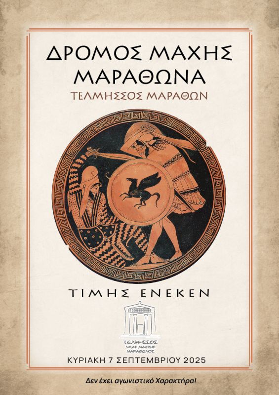 Για να τιμήσει την Ιστορία του τόπου μας, τους Ήρωές μας και την σημαντικότερη Μάχη της υφηλίου, τη Μάχη του Μαραθώνα, ο σύλλογος Μαραθωνοδρόμων του Ιστορικού Δήμου Μαραθώνος, ο ΤΕΛΜΗΣΣΟΣ ΜΑΡΑΘΩΝΟΣ, την Κυριακή 7 Σεπτεμβρίου 2025 και ώρα προσέλευσης 8:00 πμ στο Αρχαιολογικό Μουσείο Μαραθώνα περιοχή Βρανά, θα αναβιώσει την ιστορία διοργανώνοντας το ΔΡΟΜΟ ΜΑΧΗΣ ΜΑΡΑΘΩΝΑ, μια διαδρομή 35 χλμ στα ιστορικά και αρχαιολογικά σημεία της περιοχής μας και ουσιαστικά στο ευρύτερο πεδίο της Μάχης του Μαραθώνα!