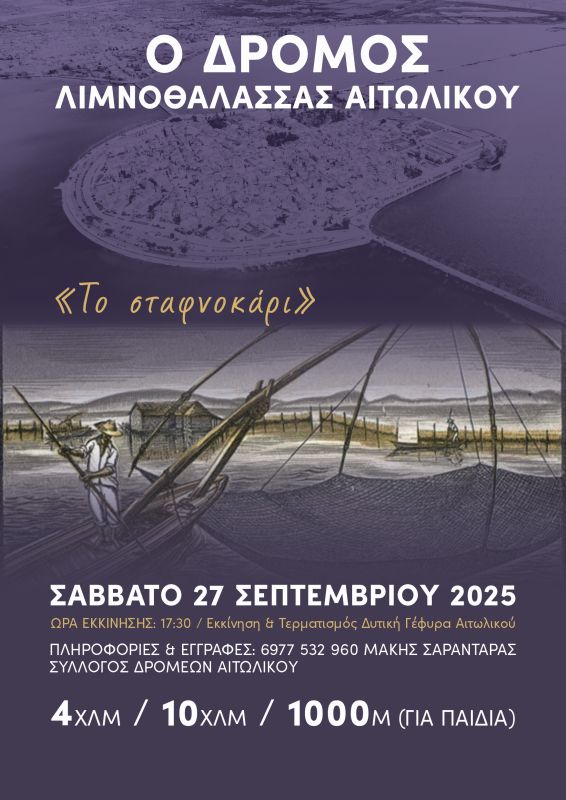 Ο Τελμησσος διοργανώνει μονοήμερη εκδρομή στο Αιτωλικό για τον Αγώνα Δρόμου λιμνοθάλασσας Αιτωλικού το Σάββατο 27 Σεπτεμβρίου 2025. Ο αγώνας διεξάγεται από τον Σύλλογο Δρομέων Αιτωλικού με κύριο διοργανωτή τον αγαπητό μας φίλο και συναθλητή Μάκη Σαραντάρα. Όπως κάθε χρόνο έτσι και φέτος ο αγώνας διεξάγεται στα πλαίσια της παραδοσιακής γιορτής ψαριού,που θα ακολουθήσει μετά το πέρας του αγώνα στην κεντρική πλατεία του Αιτωλικού.