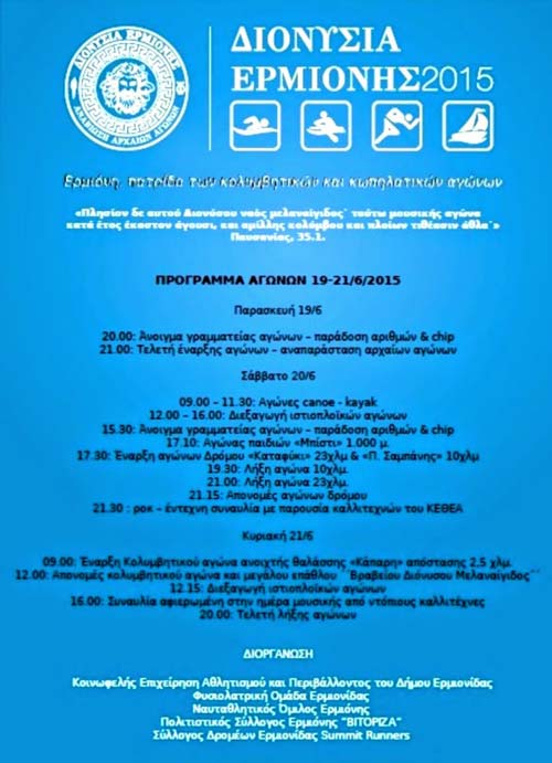 Ο Τελμησσός διοργανώνει από κοινού με τον Απόλλων Δυτ. Αττικής, εκδρομή - συμμετοχή στον 1ο Αγώνα Δρόμου Ερμιόνης Αργολίδας απόστασης 23 χλμ καθώς και 10 χλμ, το Σάββατο 20 Ιουνίου 2015.