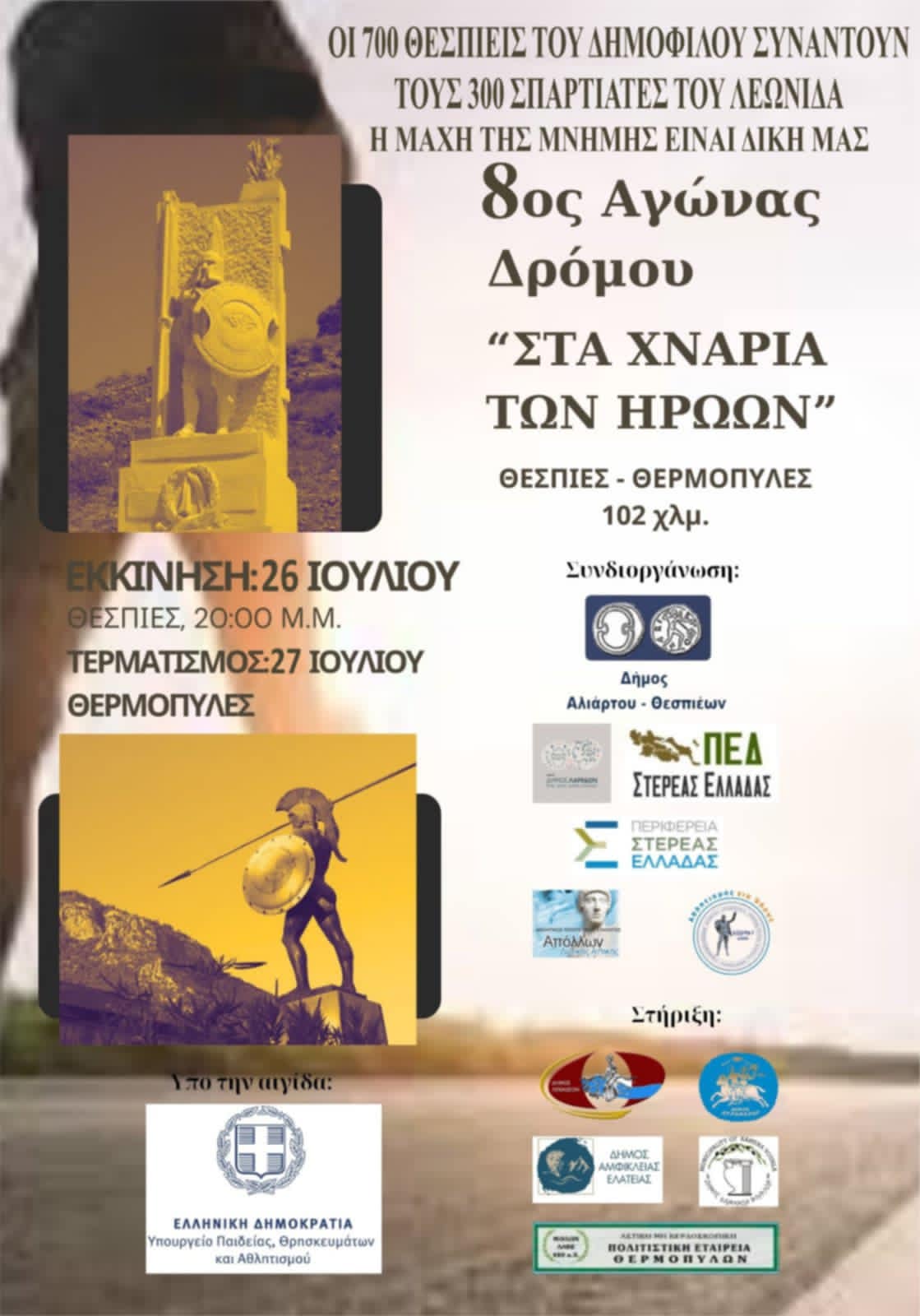 ΠΡΟΚΗΡΥΞΗ 8ος αγώνας «Στα Χνάρια των Ηρώων» της μάχης των Θερμοπυλών το 480 π.Χ. 102χλμ. καθώς και 2 σκυταλοδρομίες 2 αθλητών (51,7+50,3) και 4 αθλητών (24,3+27,4+26,5+23,8) – ΣΑΒΒΑΤΟ 26 και ΚΥΡΙΑΚΗ 27 Ιουλίου 2025.