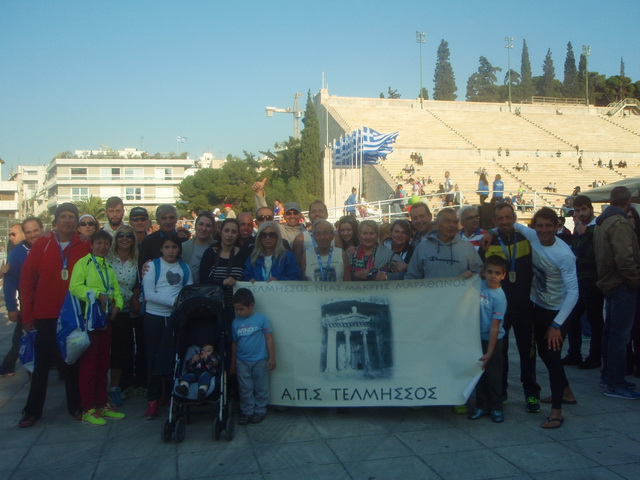 Τι πιο όμορφο και σπουδαίο να τερματίζεις σε αυτό το παγκόσμιο έργο τέχνης!Τι πιο σπουδαίο να τερματίζεις βάζοντας σαν στόχο για πρώτη φορά να τερματίσεις την αυθεντική κλασική διαδρομή, αυτή που έχει γράψει η παγκόσμια ιστορία! Τι ποιο ωραίο να σε περιμένουν οι συγγενείς σου, οι φίλοι σου, οι συναθλητές σου να τερματίζεις στο Καλλιμάρμαρο! Τι πιο ωραίο να βαπτιστείς ΜΑΡΑΘΩΝΟΔΡΟΜΟΣ! Να μας κάνεις όλους υπερήφανους και βέβαια τον σύλλογο μας, ποιον άλλο τον ΤΕΛΜΗΣΣΟ μας! Η κορωνίδα του αθλητισμού ο Μαραθώνιος, που για να τρέξεις και να τερματίσεις θέλει υπομονή, εργασία, πίστη, θέληση, τόλμη, θάρρος, αγάπη, πάθος, και προπάντων υγεία! Αυτά όλα είμαι σίγουρος ότι όλοι όσοι τρέχουν Μαραθώνιο πρέπει να τα έχουν, και τα έχουν σαν όπλα τους. Τα συναισθήματα απερίγραπτα, σε όλη την διαδρομή, από την αρχή έως το τέλος. Το στοίχημα το κερδίσατε βέβαια με κανέναν άλλο παρα μόνο από τον εαυτό σας! Άξιοι λοιπόν, όλοι οι συναθλητές μας και φίλοι που έτρεξαν και στα 5χλμ και στα 10χλμ και στον Μαραθώνιο, ο κάθε ένας με τον ξεχωριστό του τρόπο. Άξιοι ο Νικόλας, ο Άλκης, ο Οσκαν, οι Γιαννηδες, ο Μανωλης, ο Χρήστος, ο Βαγγέλης, ο Αποστόλης, ο Αλέξανδρος, ο Θανάσης, ο Χρήστος, οι Γιωργιδες, ο Στέλιος, ο Θέμης, ο Βαγγέλης, ο Ανθιμος, ο Δημήτρης, ο Σπύρος, η Καιτη, η Ιόλη, η Ρένα, ο Ντίνος, η Μαρια μας, ο Γιώργος, οι Κωνσταντινοι μας, ο Μιλτος μας η Κατερινα μας, ο Πέτρος, ο Χριστόφορος, η Γιούλα μας, η Αναστασία μας, ο Φάνης, η Φανή μας, ο Βλάσης, ο μικρός μας Στέλιος.......,ο.. η .. και όλοι οι συναθλητές του Τελμησσού μας!Ευχόμαστε μέσα από την καρδιά μας να είναι όλοι τους καλά, να έχουν πάντα υγεία και δύναμη όχι μόνο στον Μαραθώνιο δρόμο, αλλά και στον καθημερινό Μαραθώνιο της Ζωής τους.
