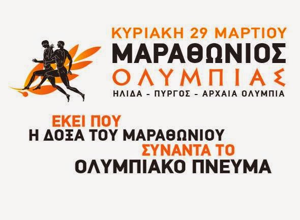 Η Περιφέρεια Δυτικής Ελλάδας σε συνεργασία με τα αθλητικά σωματεία "Ολυμπιονίκης" Αρχαίας Ολυμπίας και Κόροιβος Αμαλιάδας και ΑΓΕ Πύργου, και με την υποστήριξη των Δήμων Ήλιδας, Πύργου και Αρχαίας Ολυμπίας και του Σ.Δ.Υ. Αθηνών, διοργανώνει την Κυριακή 29 Μαρτίου τον Μαραθώνιο Ολυμπίας.