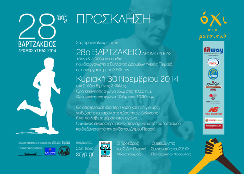 Μεγάλη συμμετοχή στον 28ο αγώνα δρόμου 15 χλμ με την ονομασία Βαρτζάκειος που είναι αφιερωμένος στον αείμνηστο και μεγάλο αθλητή Χρήστο Βαρτζάκη.