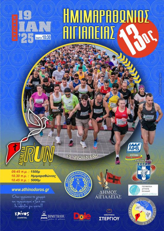 Την Κυριακή 19 Ιανουαρίου 2025 ο σύλλογός μας θα πραγματοποιήσει μονοήμερη εκδρομή στο Αίγιο για να συμμετάσχει στον 13ο Ημιμαραθώνιο Αιγιαλείας καθώς και στον παράλληλο αγώνα των 5χλμ.